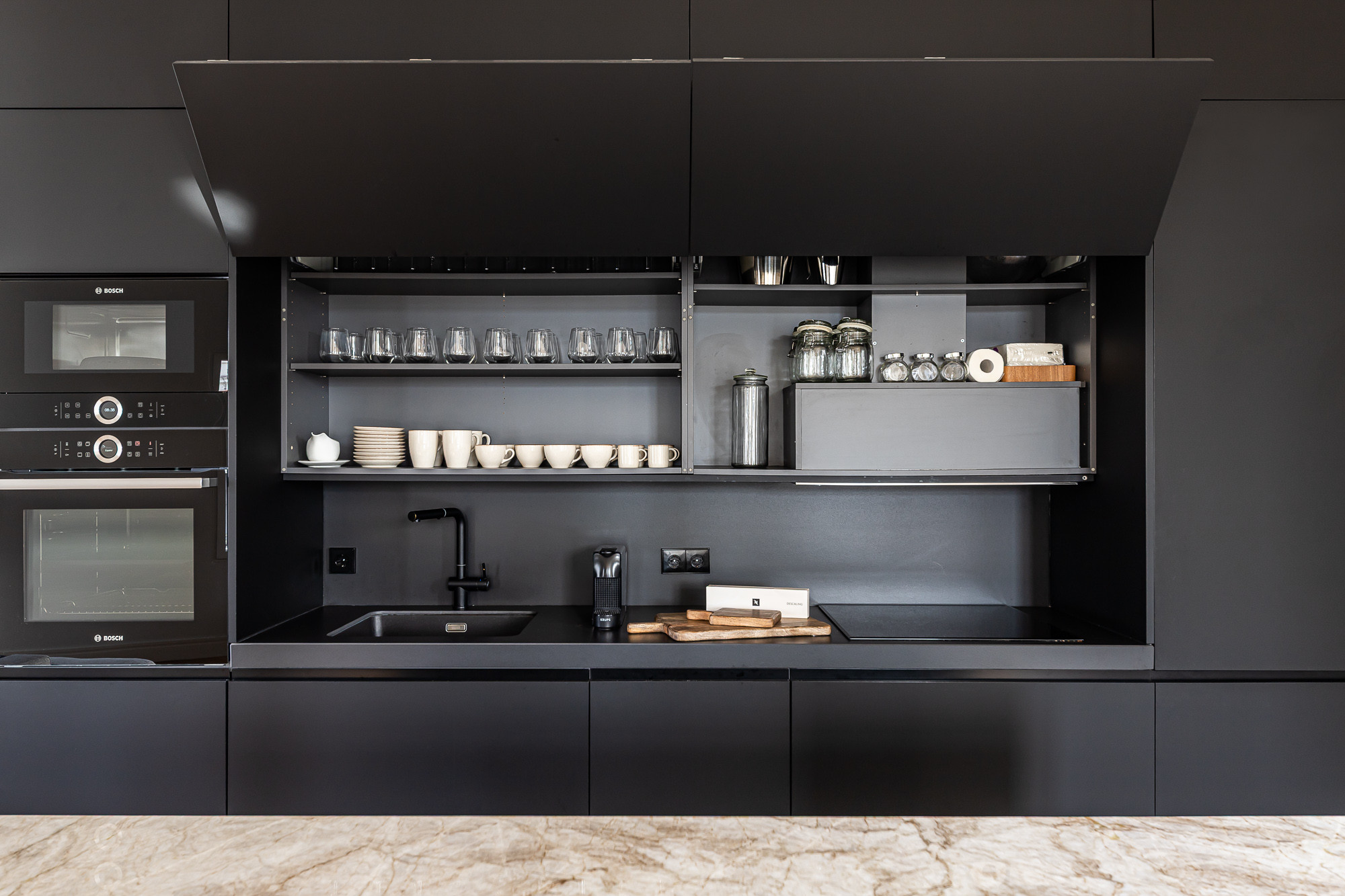 El corazón de la vivienda es un acogedor y amplio espacio abierto de salón–comedor–cocina, que se abre directamente a la terraza principal de 40 m² (430 sq ft), orientada al sur y con vistas a la Gran Vía. Es perfecta para desayunar al aire libre, tomar algo mientras contemplas el atardecer o simplemente relajarte mientras absorbes la vibrante energía de la Gran Vía desde las alturas.