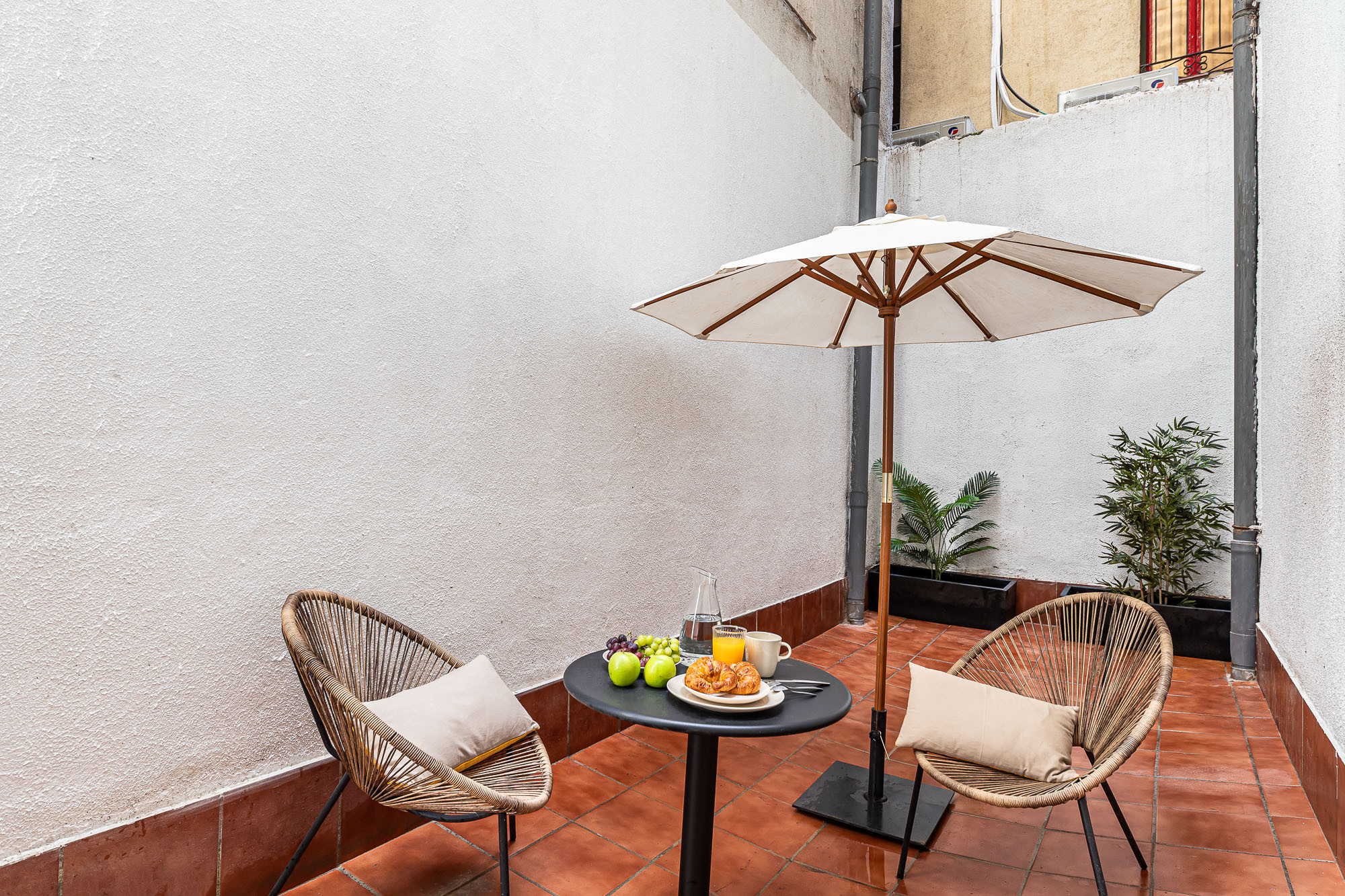 Disfruta de un patio privado perfecto para desayunos al sol, cenas tranquilas o simplemente relajarte después de un día en Madrid. El espacio incluye un dormitorio con cama doble, un salón luminoso, cocina totalmente equipada y baño completo. Todo ha sido pensado para que te sientas como en casa, en una de las zonas más seguras, exclusivas y bien comunicadas de la ciudad.